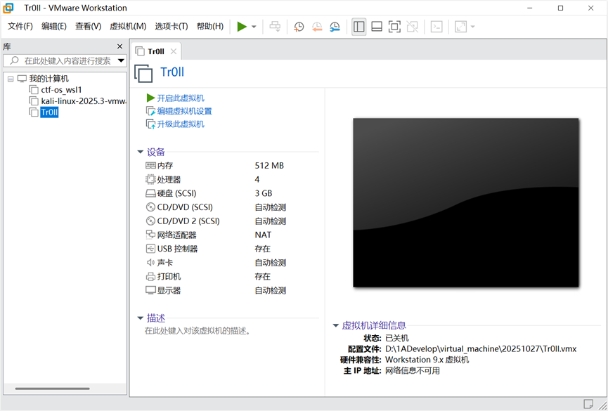 将靶机压缩包解压之后双击 vmx 文件,用 VMWare 导入靶机,默认网络适配器为桥接模式,这里按个人习惯改成 NAT 模式。启动虚拟机即可完成部署。
